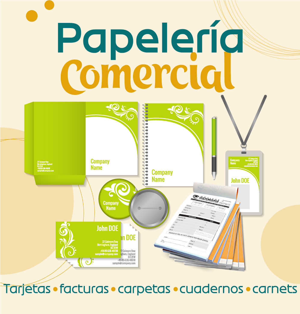 Eleva tu presentación profesional con tus tarjetas de presentación personalizadas, carnet, membretes, cuadernos, esferos, calendarios, folletos, facturas…