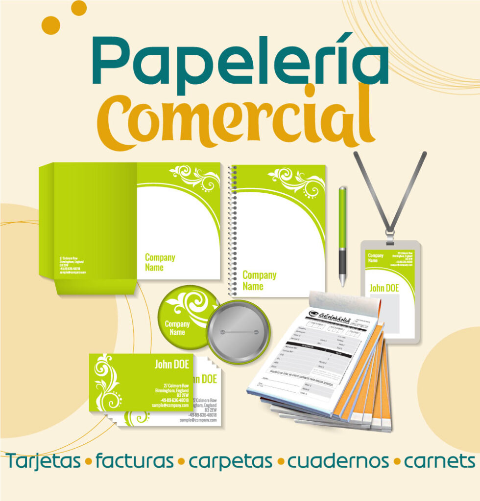 Eleva tu presentación profesional con tus tarjetas de presentación personalizadas, carnet, membretes, cuadernos, esferos, calendarios, folletos, facturas… Etc desata el poder de tu marca con nuestra papelería comercial y servicios de Impresión de alta calidad.